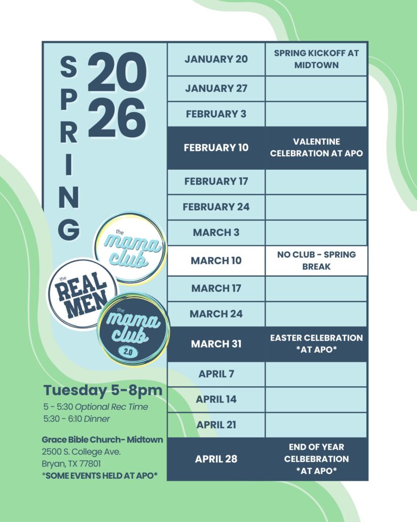 The Mama Club meets at Grace Bible Church- Midtown: 2500 S. College Ave. Bryan, TX 77801